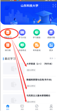 (2)集体选开课完成后,进入“首页”,即可看到本学期所有课程,点击课程名下的“课程学习”,即可在线学习。